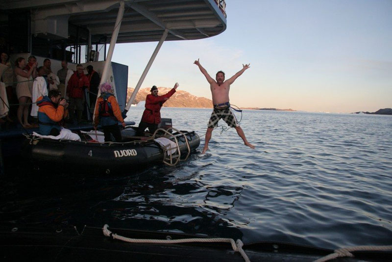 あなたが私たちのように狂っているなら、あなたは北極圏の上の水に飛び込みたいかもしれません。つまり、あなたはおそらく一度だけここに来るつもりですよね?海の精神で、私たちは船の後ろから北極海の真ん中に飛びました。さて、それが一生の冒険です。