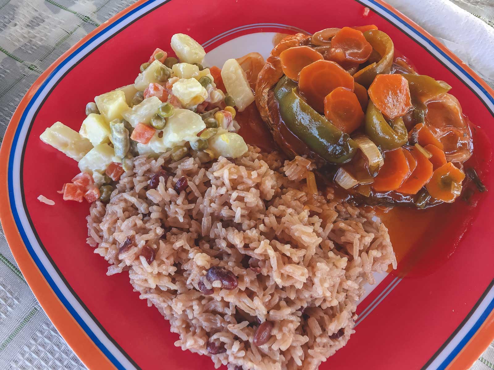 キューバやコスタリカの米と豆と同様に、ジャマイカの米と豆は、ほとんどすべての伝統的なジャマイカ料理に添えられます(カレーだけではありません)。このおかずは「紋章」というニックネームで呼ばれるほど人気があります。