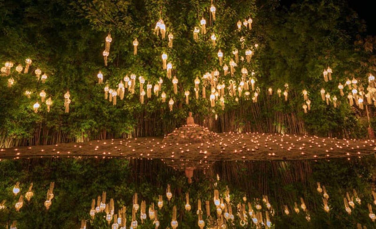 ワット・チェディ・ルアンは特に美しかった寺院にはろうそくが照らされ、ランタンは店の屋根から垂れ下がっており、木はランプで飾られ、水はきらめく光で裏打ちされています。ランタンズはチェンマイのすべての通りを飾り、街は美しいです。あなたが参加できる多くのお祝いがあります。