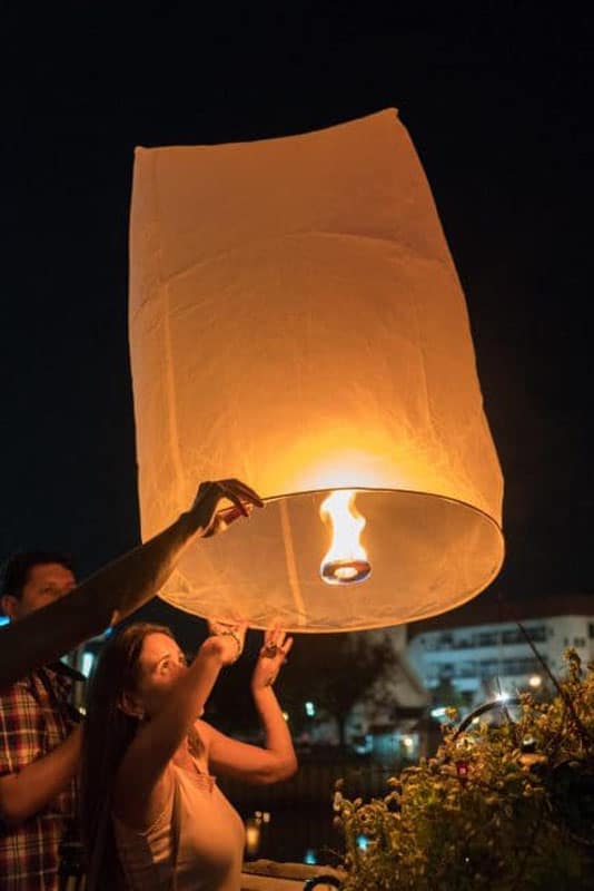 環境や脆弱な野生生物を傷つけないように、タイで自由に設定するために独自のワイヤーフリーランタンを持ち込むことをお勧めします。購入できますアマゾンで。 イベントに至るまでのチェンマイ周辺のランタンを見つけることは不可能でした。私たちはどこにでも見ましたが、リリースの夜にはそのベンダーのみが見つかりました。タイはより厳しいルールの作成に取り組むべきだと思います。