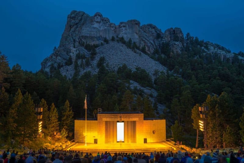 ラシュモア山の眺めを楽しんでいますビデオの後、顔は点灯します。国立公園のレンジャーが、彼らの国のための犠牲を記念するために、すべての活動と引退した軍隊を舞台に招待する感動的な式典が起こります。ラッシュモアマウントナショナルメモリアルは、おそらく全国で最も愛国的なモニュメントの1つであるため、適切な会場です。