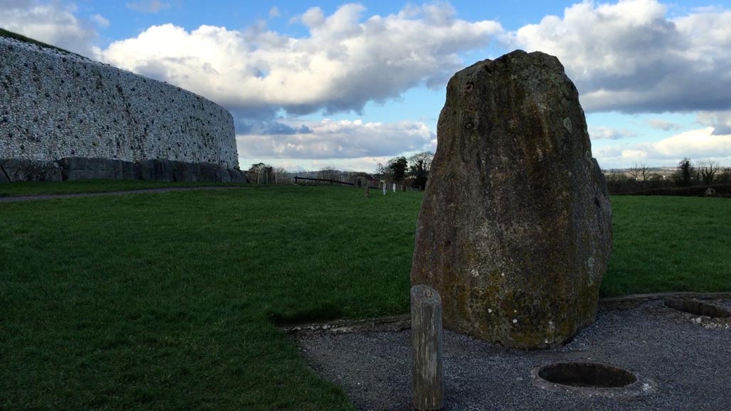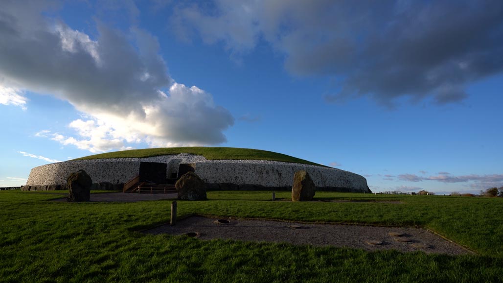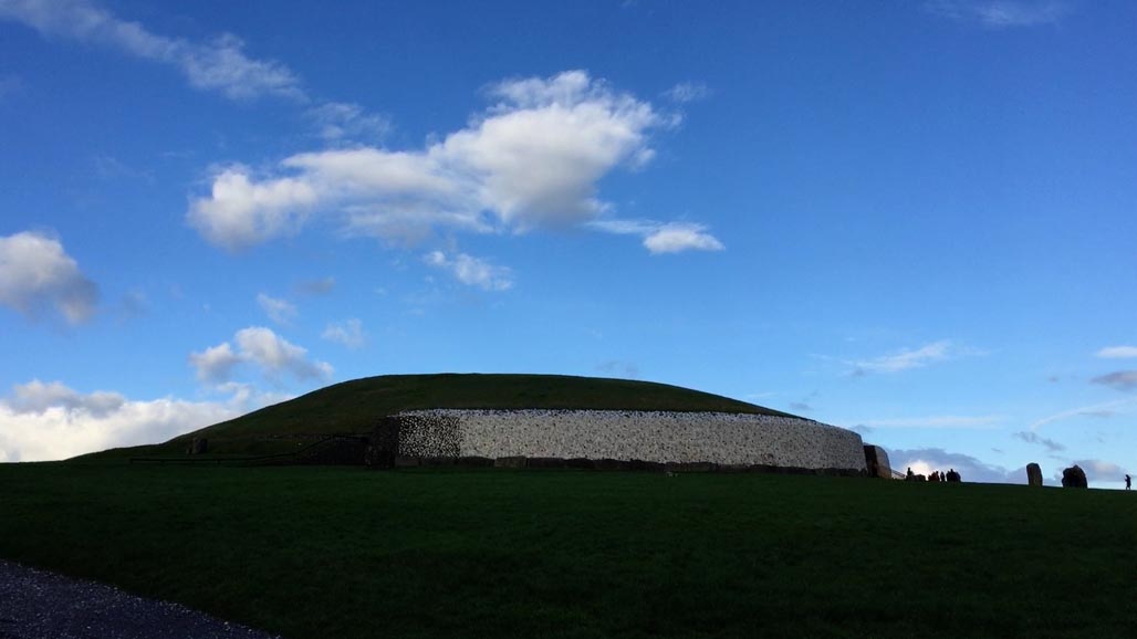 Newgrangeは巨石の芸術の宝石であり、印象的に防水性があり、草が茂った畑の中に忘れられないほど美しい場所に位置しています。風の吹きさりの地形は、サイトにエーテルのような雰囲気を与え、石の円と墓の塚が広大な地平線に対してさらに顕著に見えるようになります。