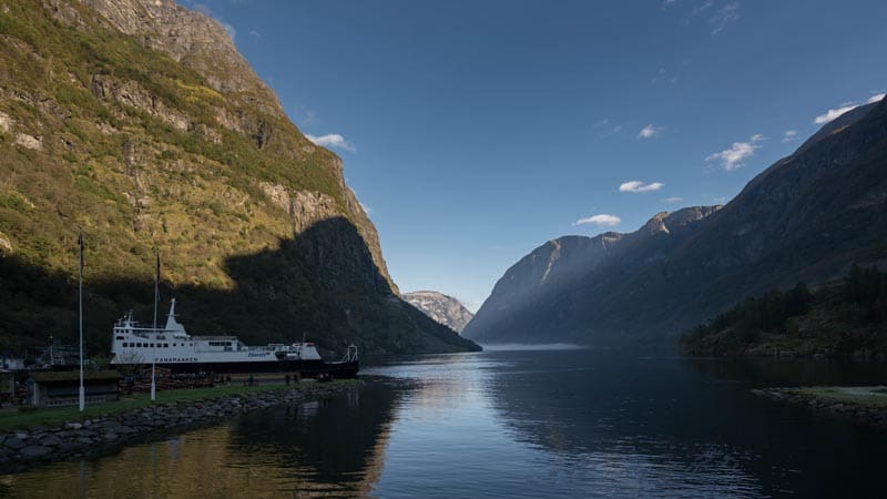 私たちのフェリーは、フィヨルドの口で待っています。Gudvangenで過ごした時間は短すぎました。朝のハイキングと目の前でシーンの写真を撮ることができたでしょう。
