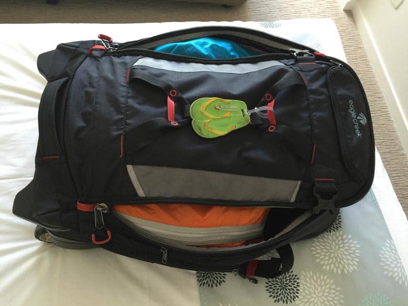 ローリングダッフルは私たちに最適ですそして最後に、適切なバッグを選択してください。以前はバックパックのファンでしたが、代わりに軽量ローリングダッフル。私たちは今、キャリーンバッグを背中に置きたいと思っています(すべてのカメラや電子機器が入っているので、最も重いので)。