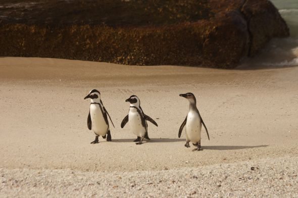 私たちがそこにいたのは南アフリカの冬でしたが、暖かい月では、ペンギンが町の周りの公共のビーチで遊んで戯れながら、実際にペンギンと一緒に泳ぐことができます。