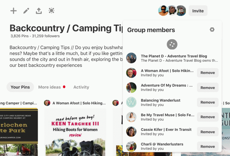 これらは、他のピンナーを招待して自分のコンテンツも共有できるボードです。
