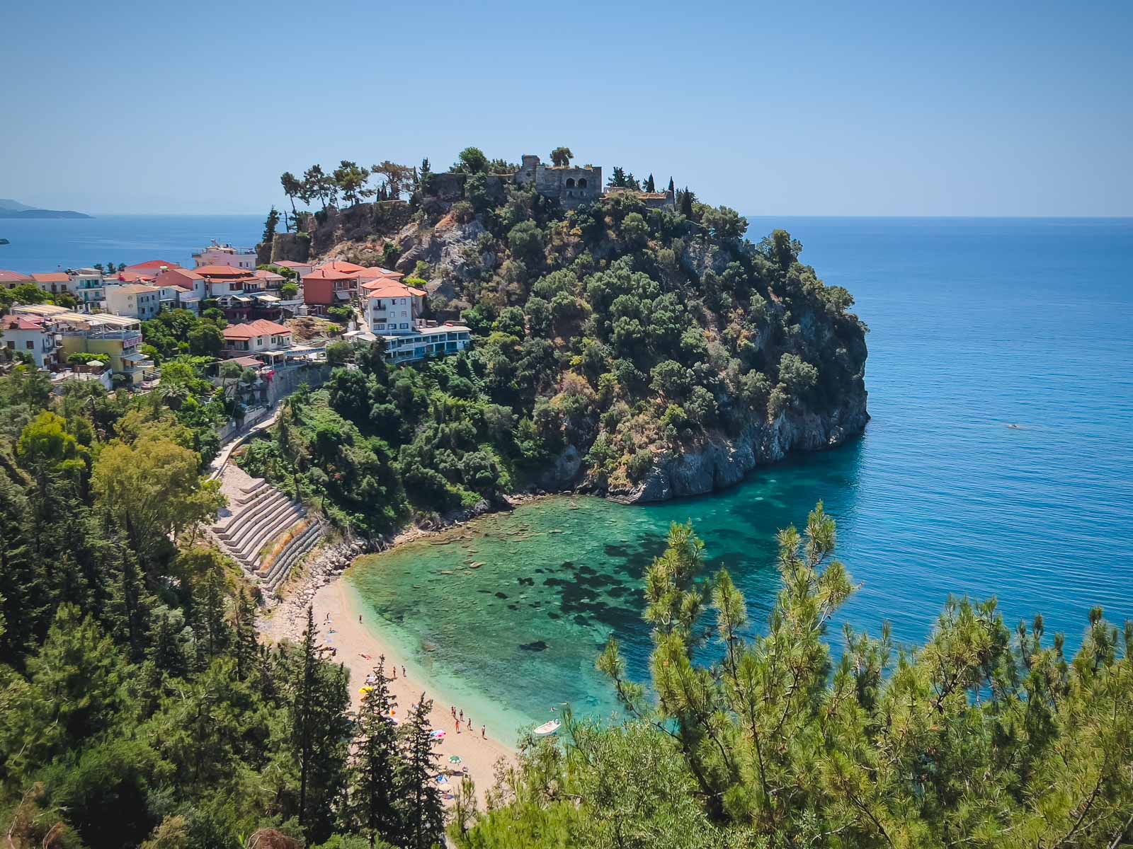 今はギリシャの諸島の味を手に入れる海岸に向かう時が来ました。私たちはエピロスの山と峡谷を探索するのに何日も費やしていましたが、イオニア海岸沿いの村がどれほど美しいかを見てショックを受けました。私たちの最初の目的地は、漁業町のプレベッサでした。