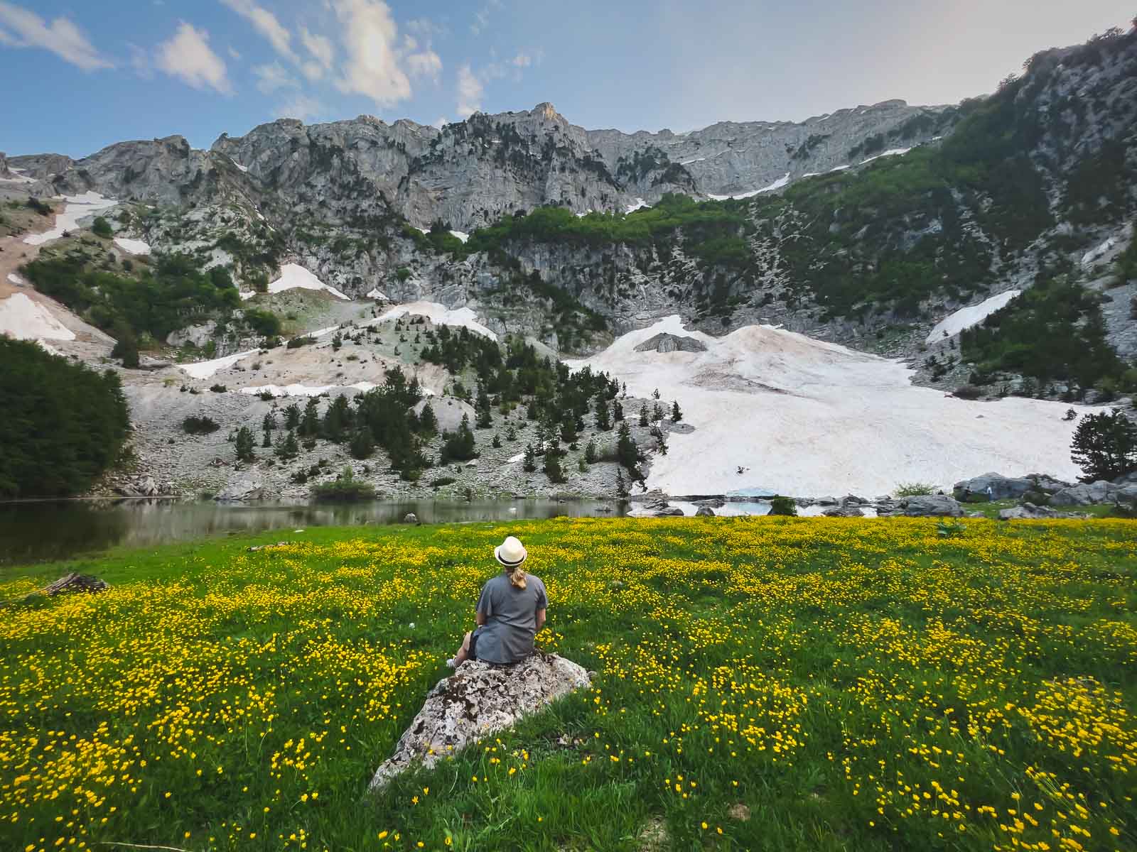 エピラスで最も驚くべき場所の1つは、ティンフィ山でした。高山ゾーンティンフィ山の雪を見るために、4×4を介して急で狭いでこぼこのトレイルを取り上げました。下は30度(華氏86)でしたが、ここでは雪の上を歩いていました!彼らは、雪は8月まで続くことができると言いました。