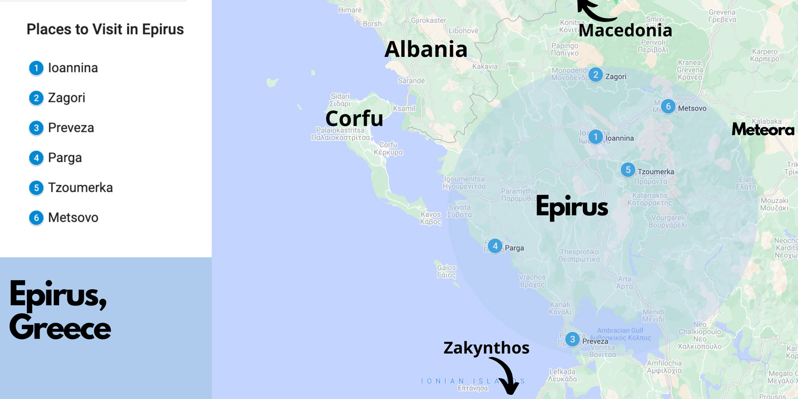 エピラスはギリシャの北西の角にあり、アルバニアとイオニア海に隣接しています。エピラスの首都への15分のフライトであるイオアニナ(発音、ヨアナナ)からアテネからのフライトであるか、車を借りることができます。アテネからイオアニナまで車でわずか4時間30分で、ギリシャの田園地帯を見ることは本当の御treat走です。私たちは知っています、私たちはそれをしました!