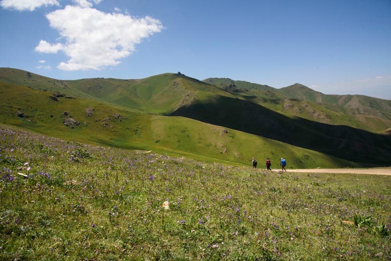 試練のほとんどがKyzart Passに到達することを目指しているため、これは間違いなく唯一の挑戦的な日です。それまでは、風景は乾燥していて野生で、密な茂み、たくさんの木、岩だらけの山脈の景色で構成されています。