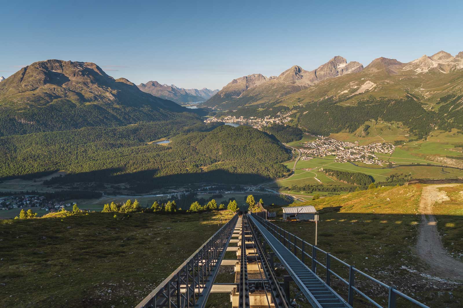 聖モリッツでのハイキングは、ALP言語で終わりに近づき、そこでチェアリフトを村に戻しました。山を下るチェアリフトに乗るのは楽しいです。まったく異なる視点を提供します。