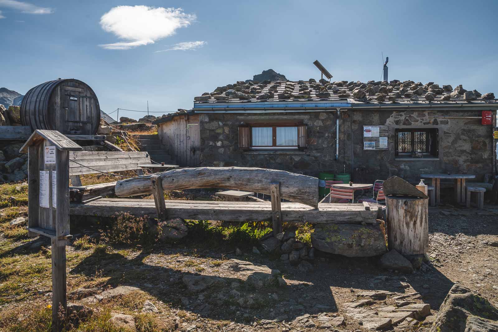 Muottas MuraglからSegantini Hutに登っているときに最初に気付くのは、スイスの旗が付いた明るい赤い建物です。これは山の端にあるトイレです。ブログでトイレについて話すことはあまりありませんが、これはあなたが入らなければならないものです。