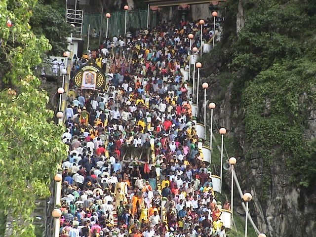 巡礼は真夜中に始まり、信者がクアラルンプールのダウンタウンからゴールデンキャリオットに続いて洞窟のふもとまで徒歩13 km始めます。ここで彼らはトランスに入れられ、この広大な部屋の入り口まで272段階まで旅を始めます。