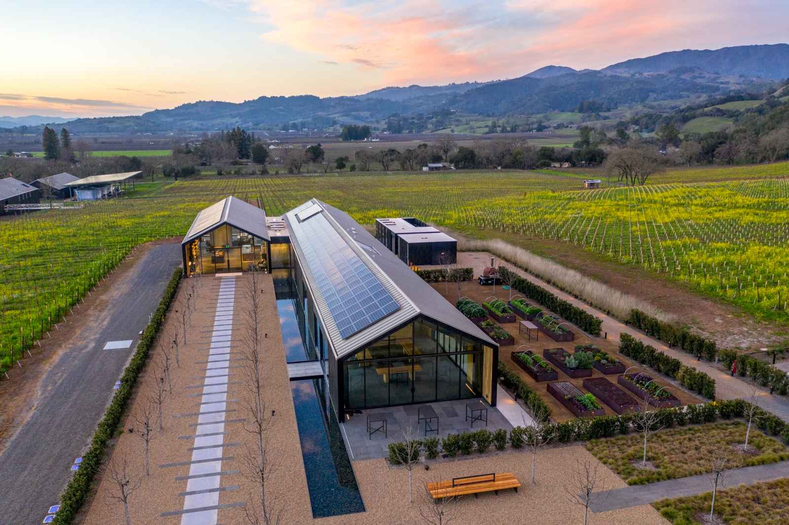 スタッグスリープ地区に隠れて、シェーファーヴィンヤードすぐに家にいるような親密で歓迎的な雰囲気を提供します。ローリングブドウ園を背景に設定されたソーラー駆動のワイナリーの光景は、持続可能な革新と美的魅力の完璧な融合です。