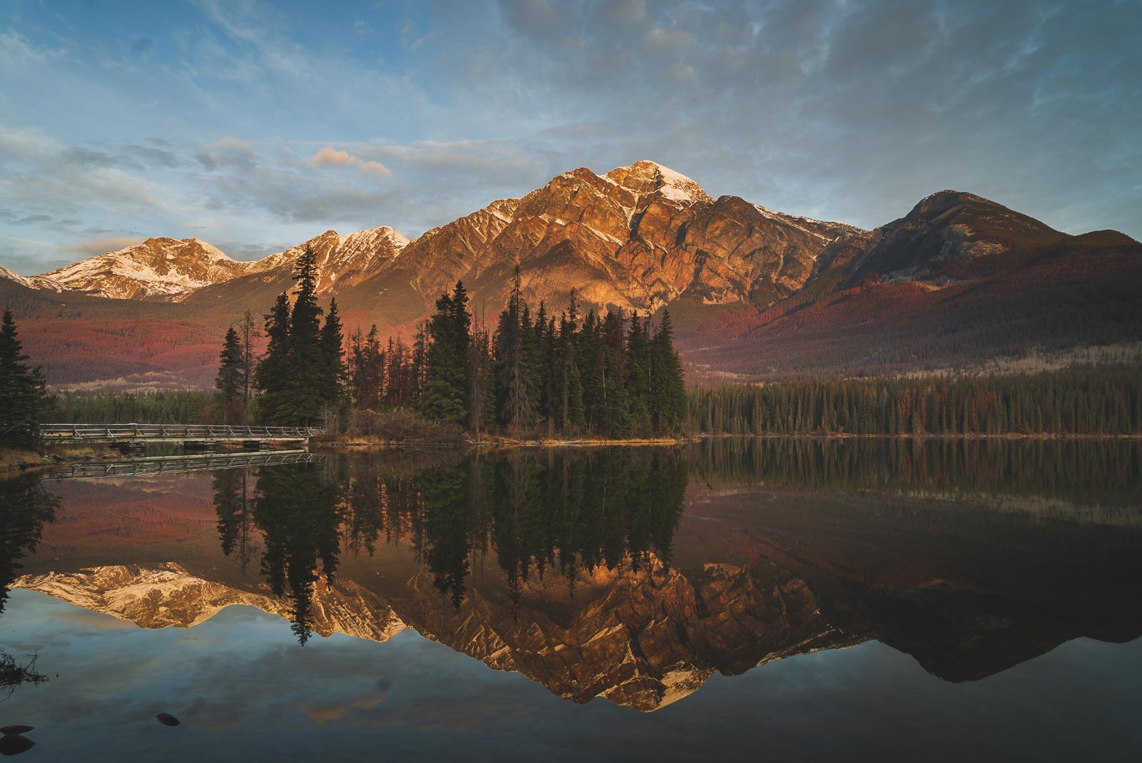 マリゲ湖は、訪問者がジャスパーで見るためのトップレイクですが、私たちのお気に入りは確かにピラミッド湖でした。静止水域でピラミッド型の山のきらめく美しい反射があるので、その名前をどのようにしたかを理解するのは簡単です。朝の日の出に行って、自分のために見てください。