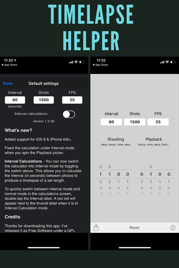 その他のクールな機能には、NDフィルター計算、Star Trails Calculator、Time Function、Time-lapse Calculatorが含まれます。