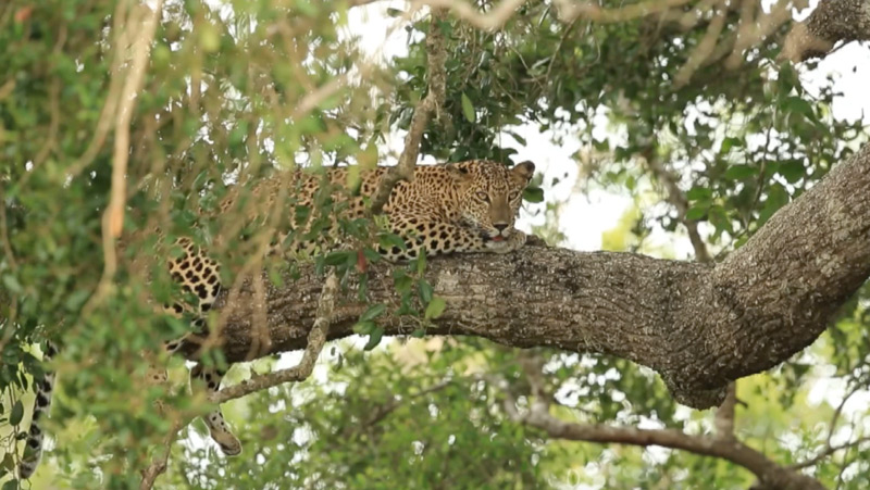 私たちがヤラにいたとき、私たちは遠い木の枝に座っているヒョウを見ました。今回は、合計5つのヒョウがあり、近くのヒョウが木に登っているという本当に良い眺めが見られました。それは大成功でした。