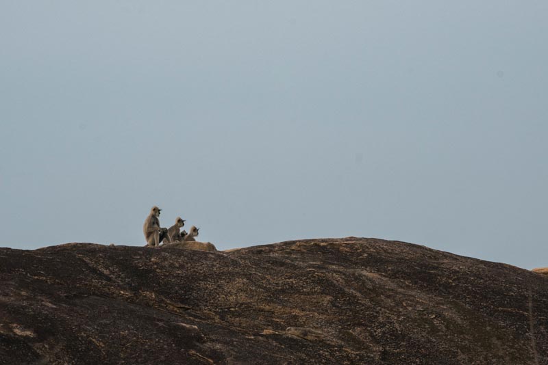 クロコダイルその後、私たちは公園の奥深くにある美しい岩の層に乗って、巨大な岩に沿って走ってジャンプしている無数の猿を見ました。夜のためにリゾートに向かう直前に夕日に遊んでいるサルが遊んでいるのを見るのは魔法のような光景でした。