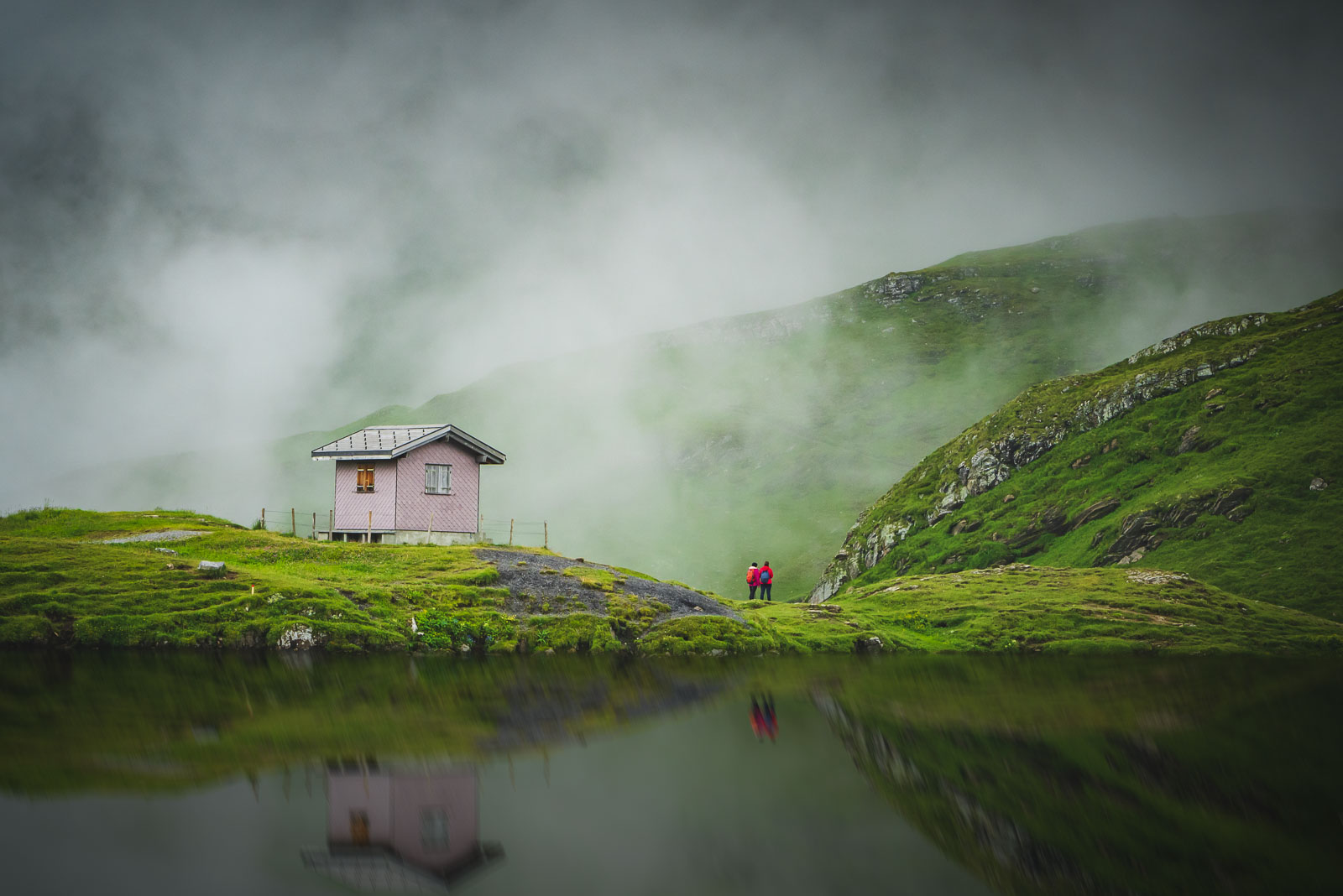 頂上にとどまる主な理由は、日の出のためにバルチャップ湖に行くことです。最初のゴンドラは朝遅くまで上がって来ないので、最初にBerggastthausに滞在することで、数時間のヘッドスタートがありました!私たちは日の出の前に出て行く前に出ようとしましたが、雨が降っていて、濃い霧を通して物事を見ることができなかったので、代わりに、雲が持ち上がることを望んで朝の輝きをつかむために少し後で出ました。
