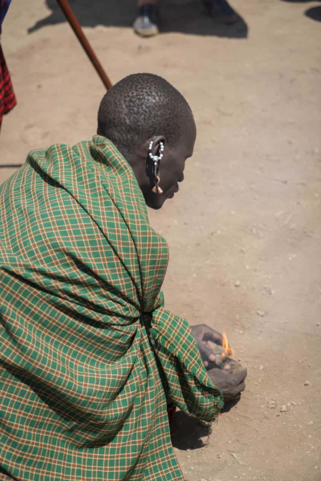 マサイが火をつける方法を知ることは通過する権利です数分以内に火が造られ、私たちの戦士は彼のスキルに大きな賞賛をもって火を見せようと見ています。できるだけ多くのデモンストレーションに参加することをお勧めします。