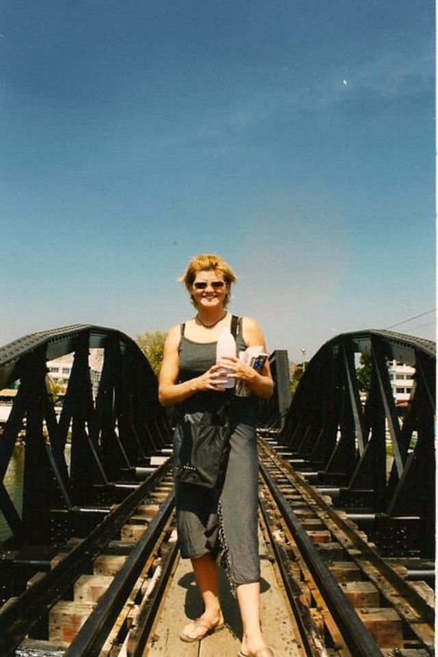 デブはクウェイ川の橋にサロンを着ています素敵なニュートラルなパターンを備えたサロンを購入してください。