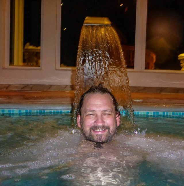 デイブはウォータースパを楽しんでいます共有されたシャワーを持っている場所に滞在している場合は、完全に服を着たトイレまで歩く必要はありません。サロンを着てください。タオルとしてだけでなく、ローブも使用します。