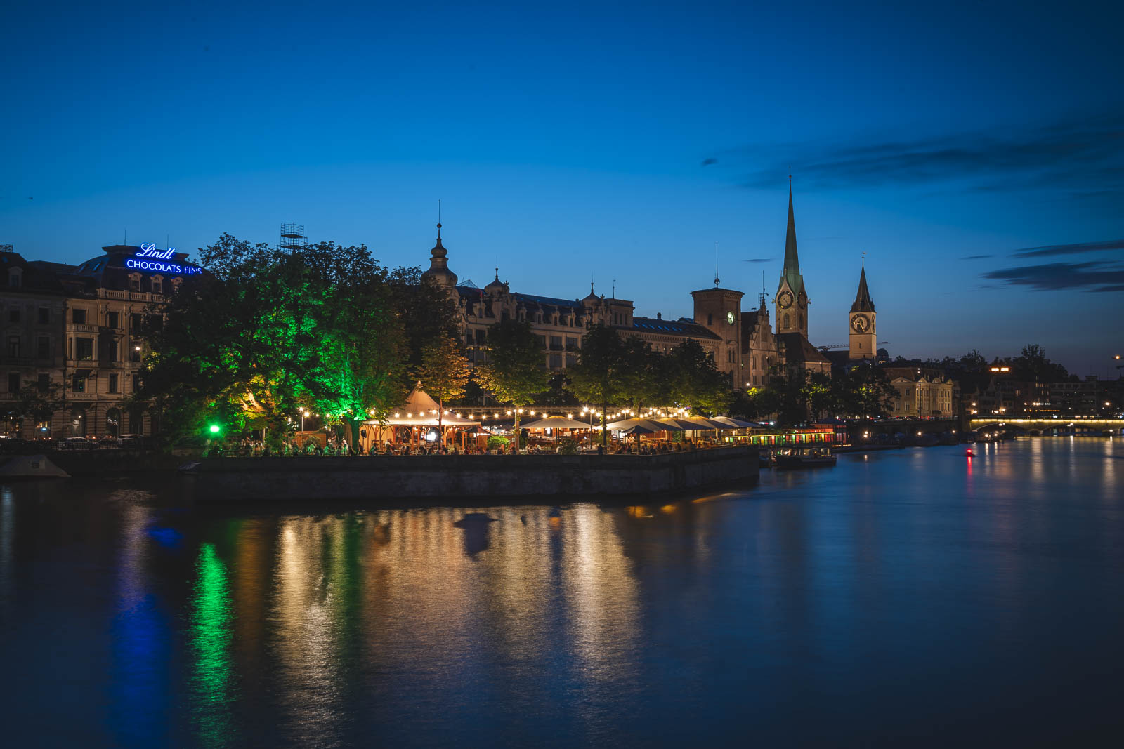 時期によっては、おそらく日没前に食べるでしょう。夕方遅くに日没がある夏の高さには、レストランのキッチンが早く近く近くにあるという難しい方法を発見したので、最初に食べたいと思うでしょう。夕食後、チューリッヒ旧市街とチューリッヒ湖の最後の橋であるQuaibrückeに向かいます。これは、リムマット川とチューリッヒの4つの主要な教会のすべてを見ることができる写真の古典的な場所です。日没時の活気のある場所ですので、通りを渡って、チューリッヒ湖の上にアルプスがどのように照らされているかを確認してください。