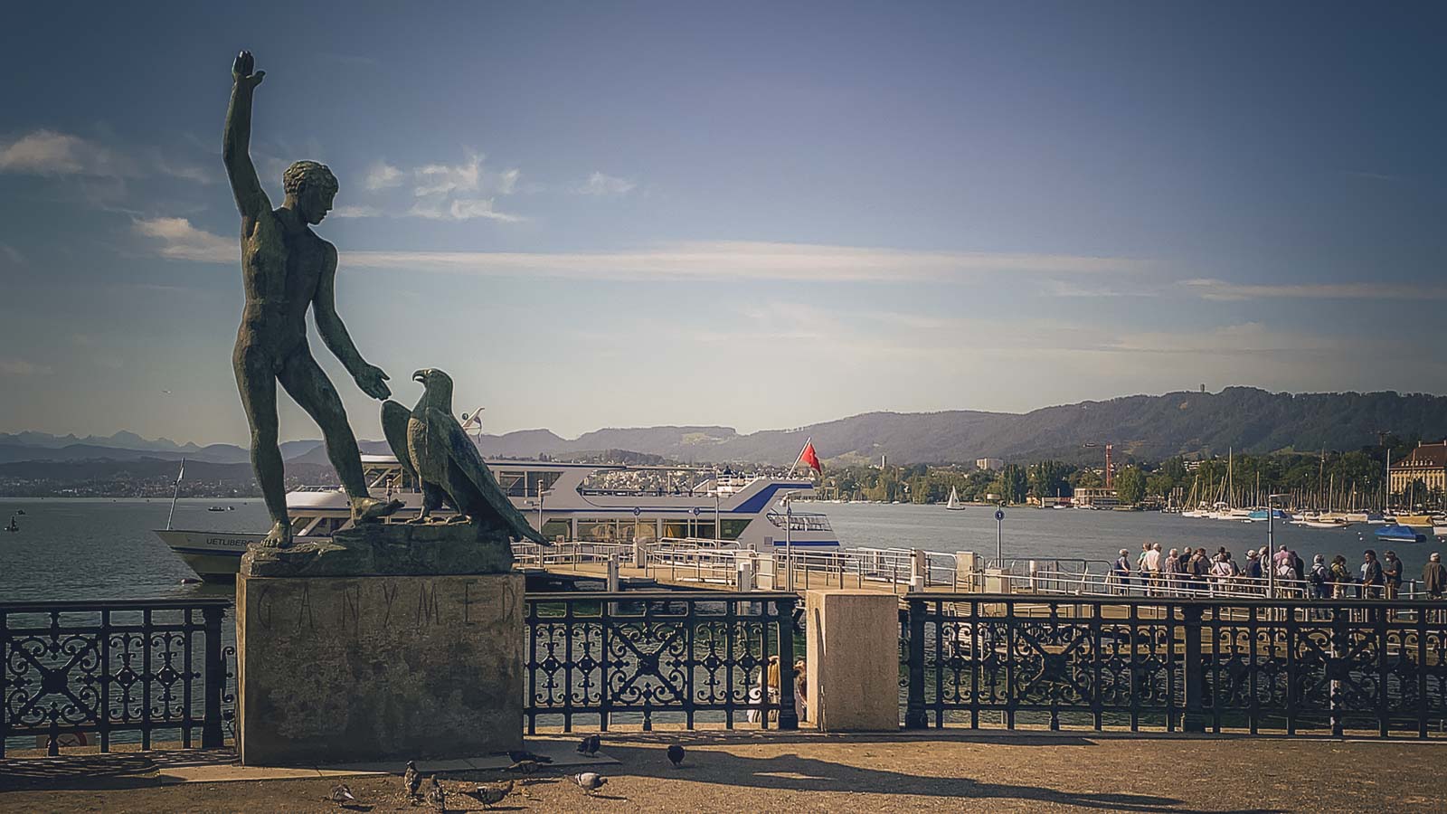 BürkliplatzPierは、チューリッヒ湖の広場であり、湖の周りの旅行のためにボートに乗る場所です。山、桟橋、チューリッヒ湖の海岸の美しい景色があります。ちなみに、ここには週に2回野菜市場と日曜日の農民市場があります。そのため、この集まりの場所では多くのことが起こっています。また、樹木園公園や湖に沿って散らばる水泳プラットフォームなどの場所に向かうことができる素晴らしい散歩道もあります。しかし、今日、歩く代わりに、チューリッヒカードを使用してフェリーに乗ってWollishofenに飛びます。