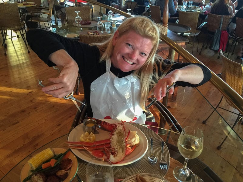 スカイライントレイルでのハイキングの前に、島のサンセットインでロブスターを掘り下げます。私たちは特に海辺のダイニングルームを楽しみました。そこでは、地元で捕まえられたロブスターとカニを味わい、サーバー自身のボーイフレンド自身に閉じ込められました!