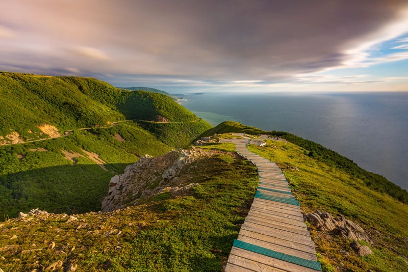 日没時のケープブレトンのスカイライントレイル夏にカボットトレイルを運転する美しさは、日が長く、1日に多くの風光明媚な停留所を詰めることができるということです。夏の最中、太陽は午後9時以降まで沈まなかったので、午後7時から始まる7.5 kmのループを探索するのに時間がかかることがありました。