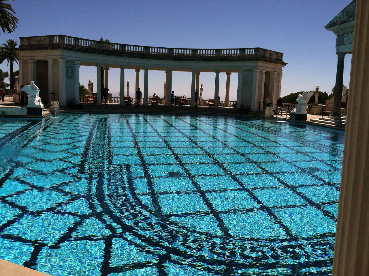 ハースト城スイミングプール - ロードトリップカリフォルニアサンシメオンは、ビッグシュールロードトリップが終了する場所ですが、パシフィックコーストハイウェイはロサンゼルスに続きます。やるべきことがたくさんあるので、ここでベースを作ることができます。これにはハースト城があり、ビーチ、ハイキングトレイルがあり、このロードトリップ全体、海洋生物がたくさんあり、太平洋の美しい景色があります。30ドルからハースト城のツアーを受講できます。