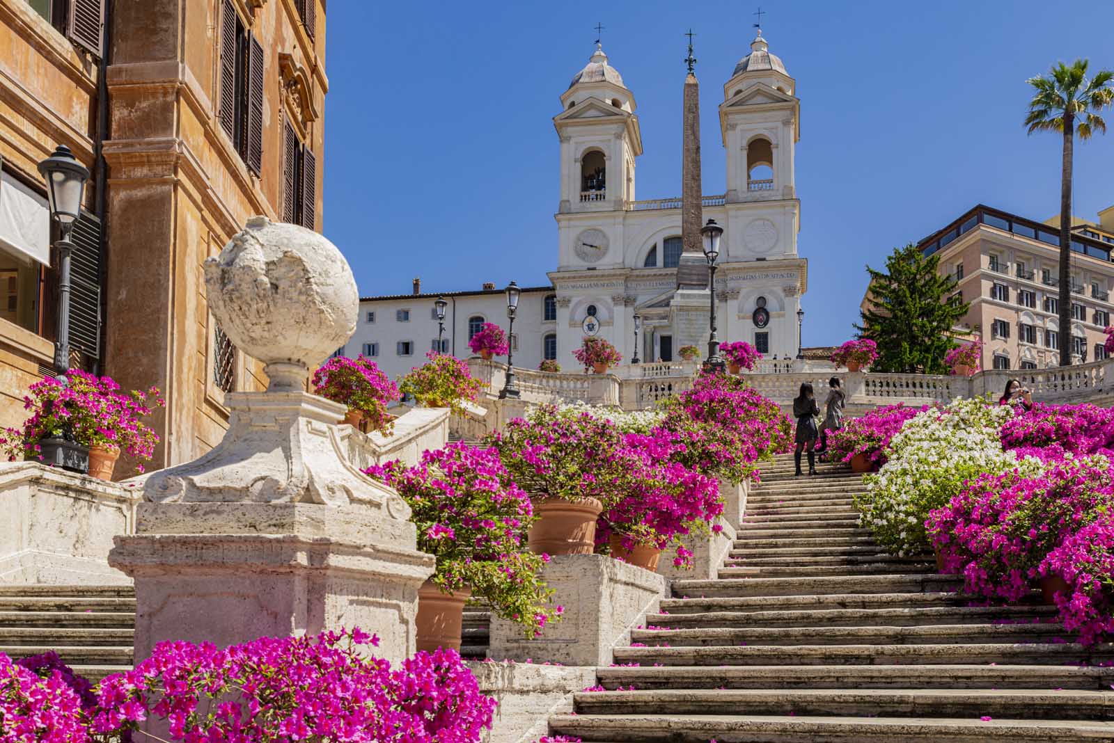 最後に、スペインの階段に向かいます。スペインの階段は、スパグナ広場とトリニタ・デイ・モンティ教会をつなぐ壮大な階段です。ローマの見事な景色の階段を登り、街に太陽が沈むのを見てください。このステップは、地元の人々と観光客の両方にとって人気のある集まりの場所であり、1日のローマの冒険を終わらせるのに最適な場所です。
