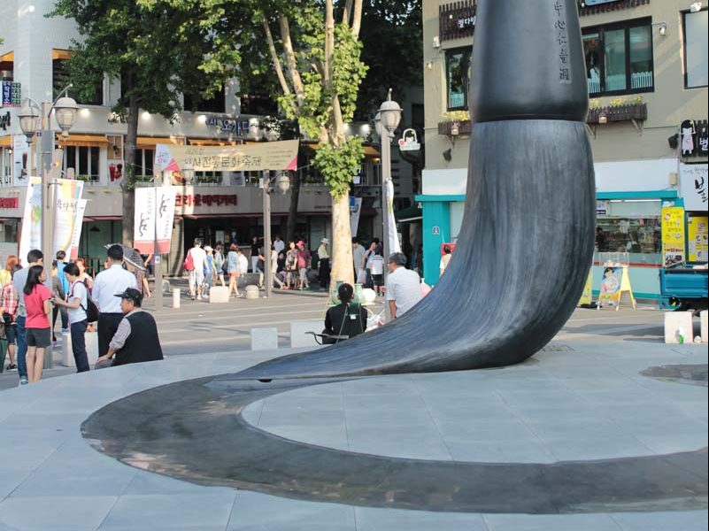 この巨大な絵筆は、インサドンの入り口を示しています昼休みの後、今度はジョンノグのウォーキングツアーを続けて、ソウルのクリエイティブアーツの中心であるインサドンギルまで!