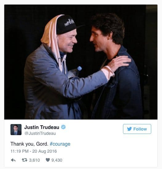 悲劇的にヒップコンサートの前に、ロン・マクリーンとジャスティン・トルドー首相
