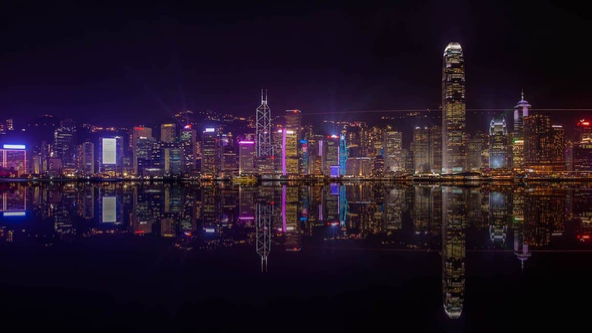 香港のスカイラインリフレクション香港は中国で最もエキサイティングな都市であり、そこで時間を過ごすのが大好きです。
