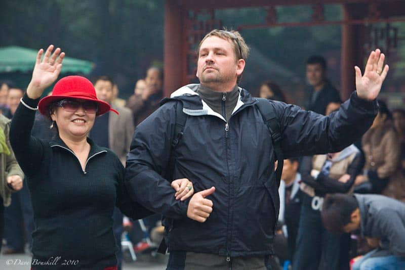 公園のファッションショーでキャットウォークを歩いているデイブ中国の地元の人々を知るための最良の方法は、地元の公園でたむろすることです。