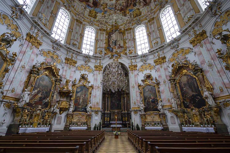 エタル修道院の内部町から少し離れたリンダーホフ宮殿に車で行く間、ドーム型の修道院が目を引きました。これは私たちの旅程やレーダーにはありませんでしたが、私たちが近づいてきてとてもうれしいです。