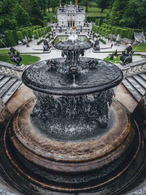 なだらかなバイエルンの田園地帯の中にある宮殿には、彫刻と彫像があり、圧力だけで庭園から25メートルに達する噴水があります。ルートヴィヒはフランスの王ルイス14世を偶像化し、ヘレンキエムシーのように、リンダーホフ宮殿の多くはベルサイユをモデルにしています。