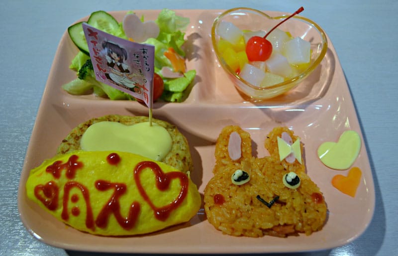 秋葉原のメイドカフェでそれほど伝統的ではない食事。屋台の食べ物