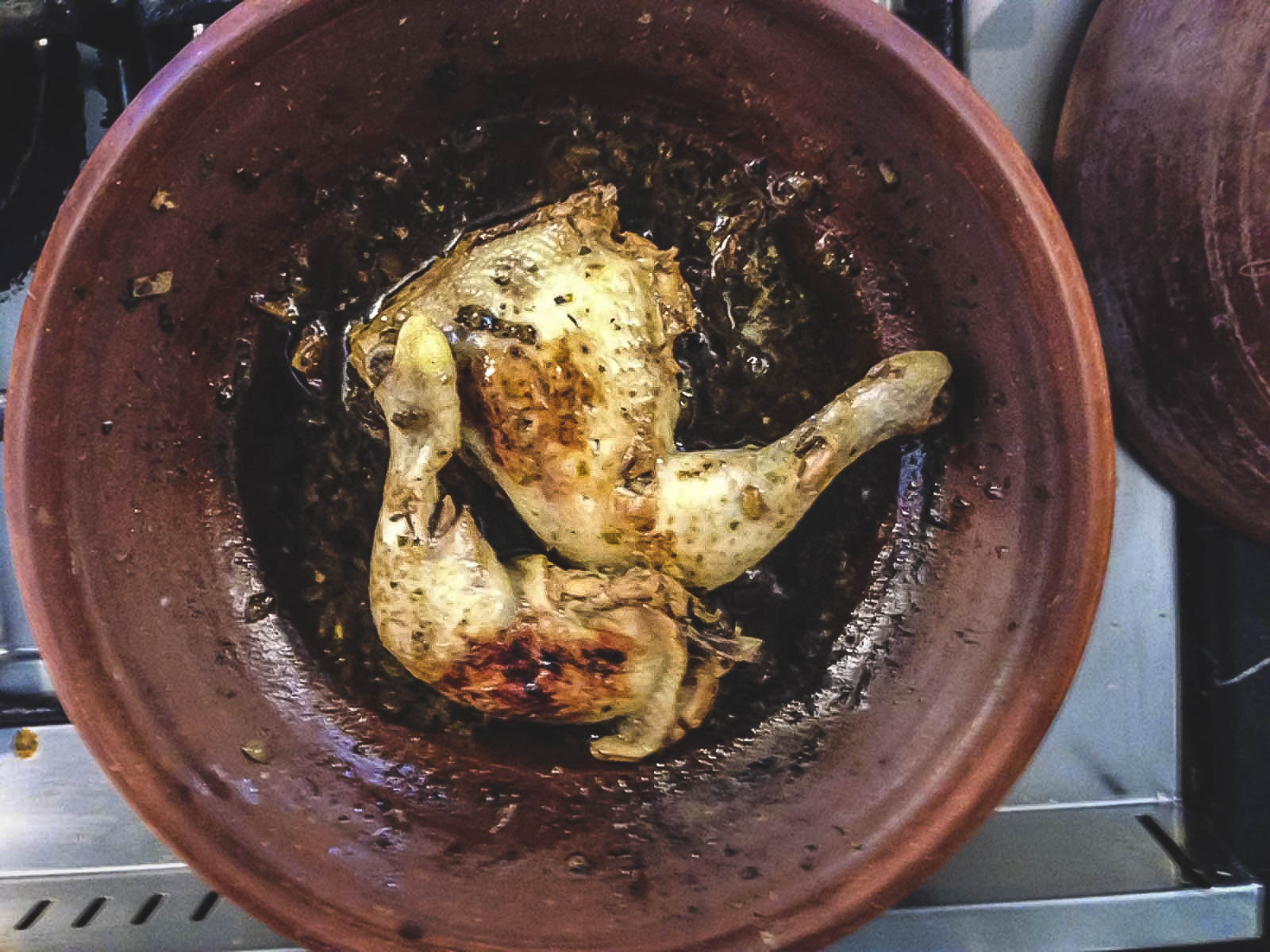 フレーバーには、調理中にオリーブオイルとスパイスが吹き込まれ、すべてが柔らかくておいしいです。私たちのチキンタギンは、ベルバーチキンと野菜で構成されており、牛肉のタジンにはプルーンとアーモンドが添えられていました。自宅で独自のチキンタジンを作りましょう。