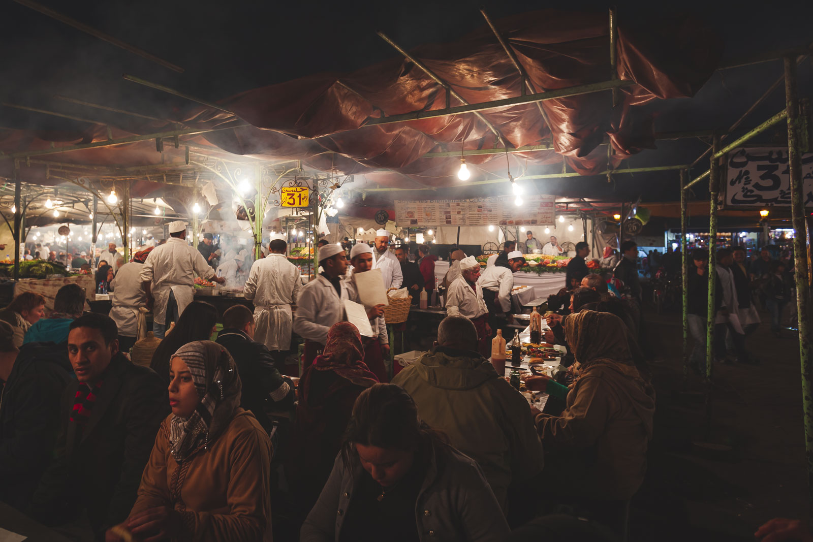 モロッコ人は1日3食を食べますが、メインの食事は夕食とは対照的に昼間です。したがって、外食するときは、昼食時に大量の食事を注文し、夕食にはソースやケバブをディップしてモロッコのパンの軽い食事をお楽しみください。