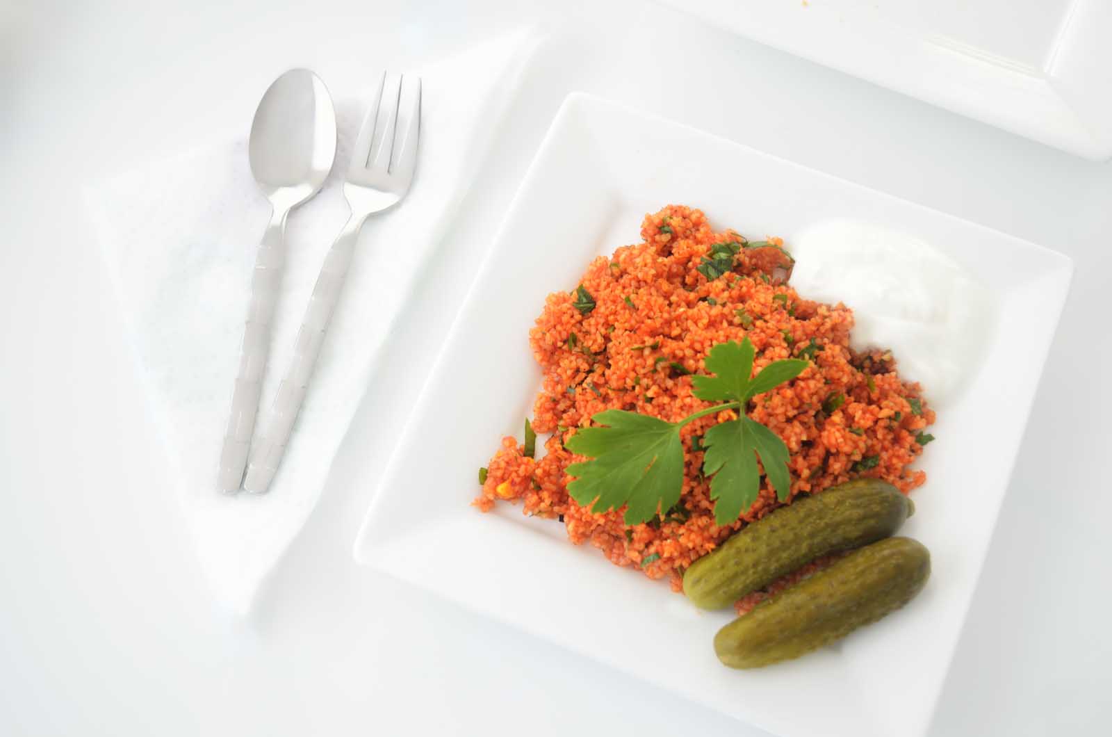 あるいは、この新鮮なトルコ料理のボウルで、これはオーバージンとトマトのミッシュマッシュです。しかし、多くの人々は、ピーマン、スパイス、タマネギ、ニンニク、または他のスパイスを投げるなど、この伝統的な料理にスピンを加えます。