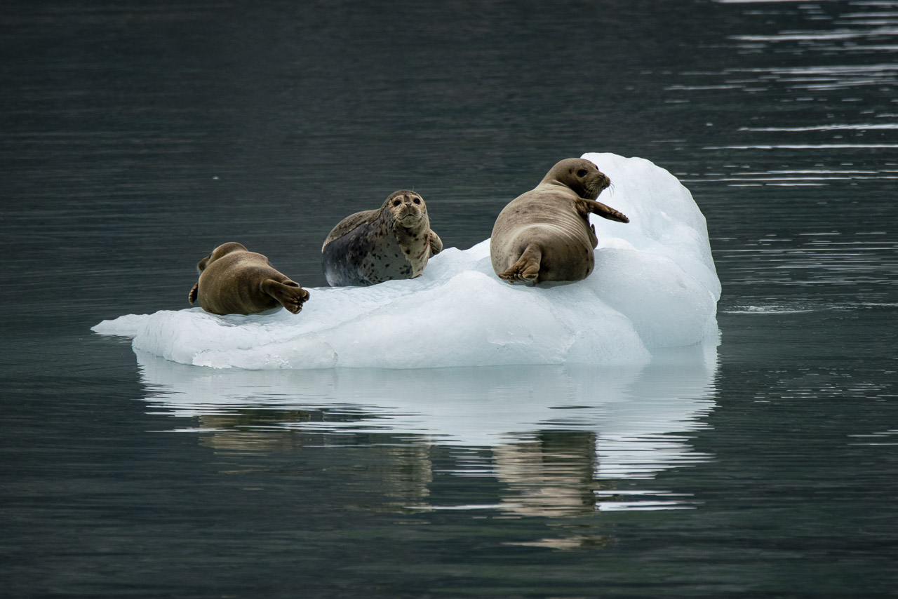 グレイシャーベイ国立公園での私たちの最初の日は、ジョンのホプキンス氷河に連れて行ってくれました。大きなクルーズ船は、子犬を育てるアザラシのためにこのチャネルを登場することはできませんが、小さな船は十分に小さいほど邪魔しません。