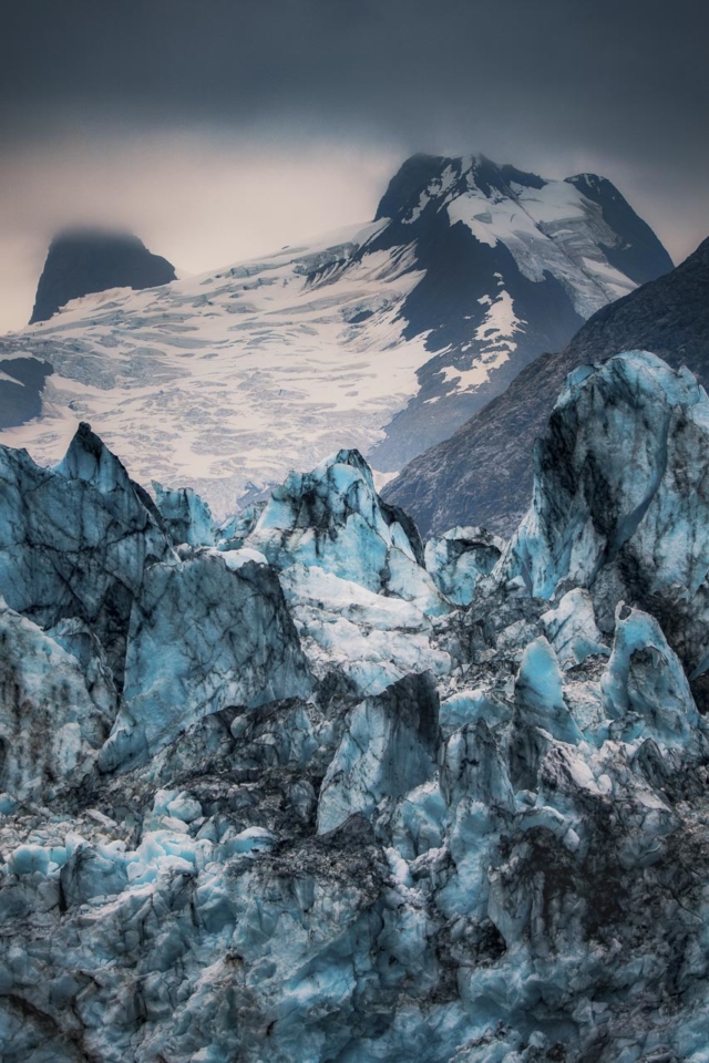 ジョンのホプキンス湾の長さは12マイルです。それは印象的な光景です。幅1マイル(1.6km)と高さ250フィート(76メートル)のスパンで、巨大です!表面の下にさらに200フィート(60メートル)の氷があります。雲は私たちがそれに到達するまでに入っていましたが、それはちょうど氷をさらに青く見せました!