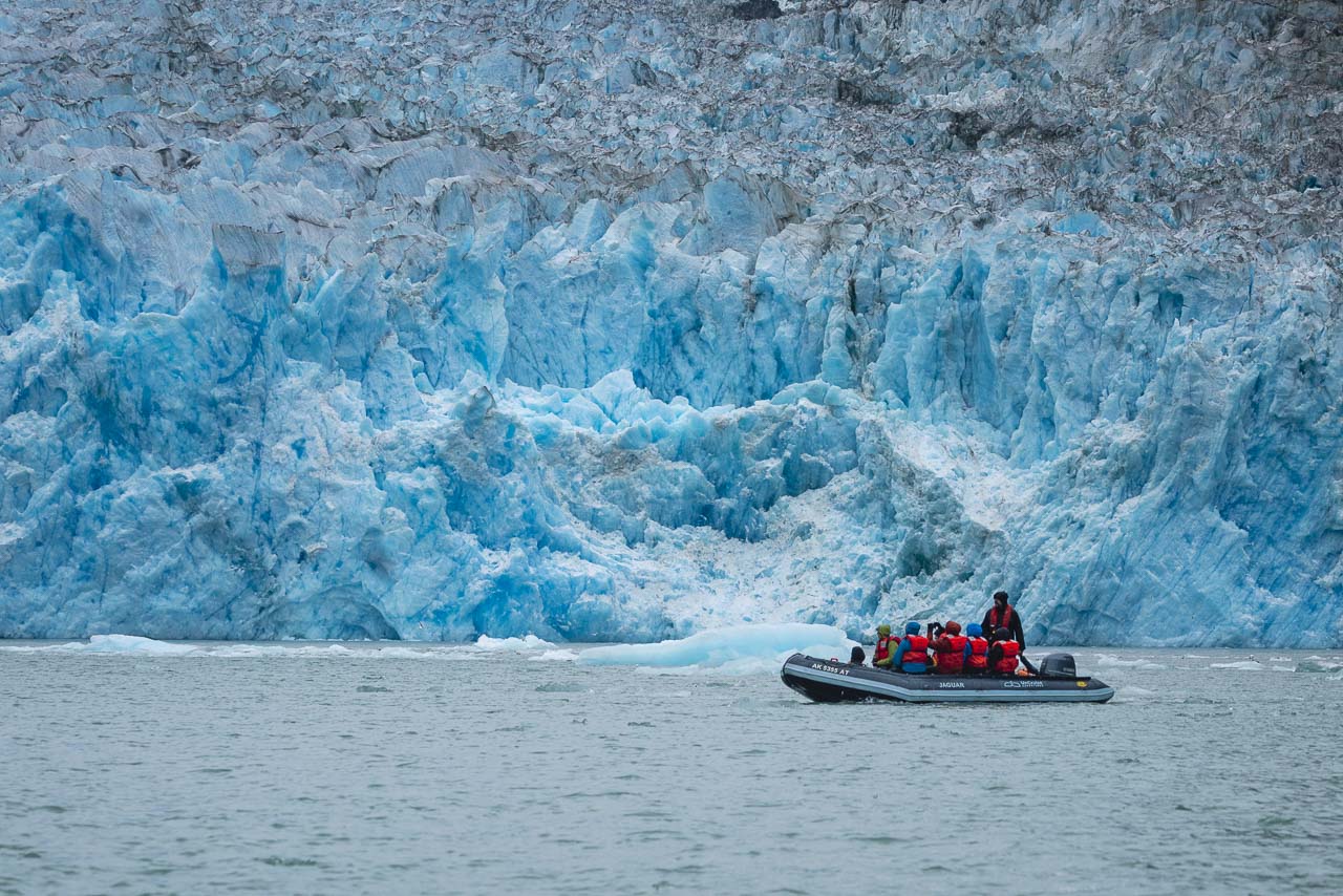 船の甲板から見ている間、氷山が過ぎて浮かぶように、出産氷河で満たされた氷河湾を航海することを想像してください。さて、乗組員が名前であなたを知っている群衆のない小さな船の上に立っていると想像してください。それはクルーズの冒険です
