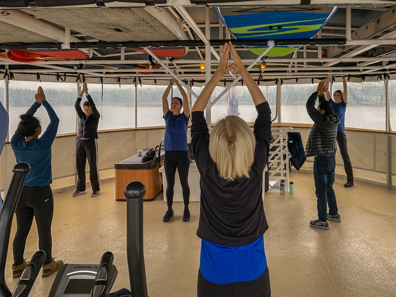 毎朝、遠征隊のリーダーであるミーガンが率いるストレッチクラスで手足を吸うことができます。彼女は旅行中にもヨガのクラスをいくつか提供しました。カヤックやハイキングの日から筋肉を解決するのに最適な方法です。