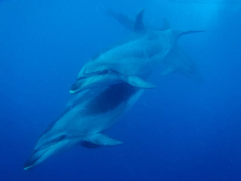 ニュージーランド北島の島の湾の海岸沖のイルカと一緒に泳いでいます。続きを読む:ニュージーランドについての14のクールで楽しい事実
