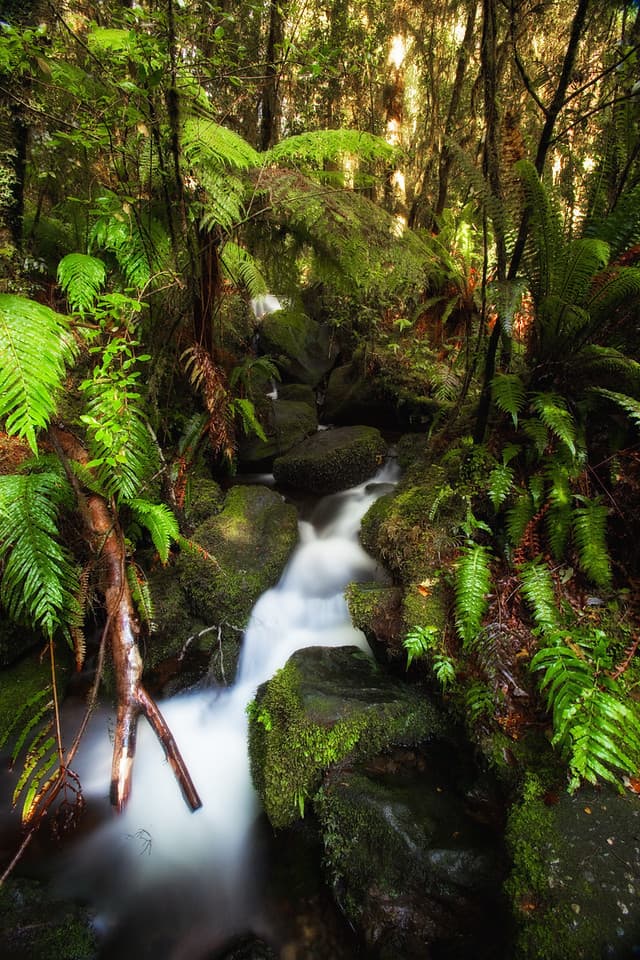 ニュージーランドの森のランダムな美しさ。旅行アダプターを入手してくださいニュージーランドとオーストラリア