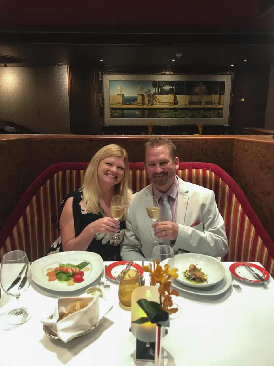 私たちのお気に入りの夜の1つは、Le Cirqueでの夜になったPinnacle Grillにありました。彼らはカーテンとメニューを交換して、ラスベガスの有名なルシルクレストランを模倣しました。