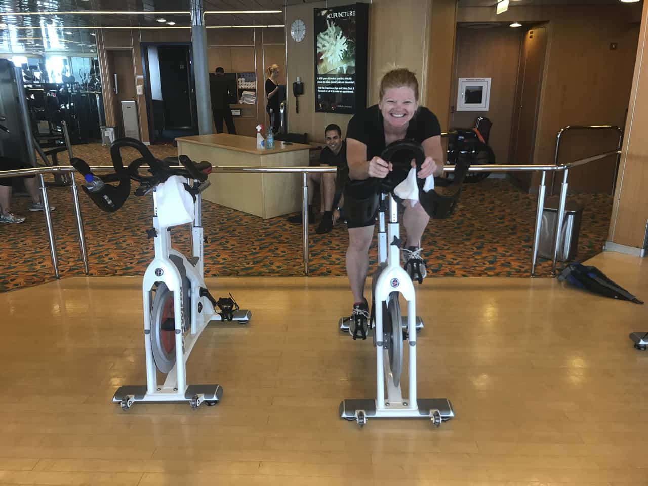 南太平洋のクルーズでスピンクラスで朝を始めるのが大好きでした。これは一日を始めるための最良の方法でした。アムステルダム氏には、数十の固定自転車と素晴らしいパーソナルトレーナーが詰め込まれた素晴らしいジムがあります。私たちの小さなグループは、スプリント、ヒルクライム、コアワークを通して私たちを連れて行ってくれたので、私たちの小さなグループが私たちを盛り上げました。